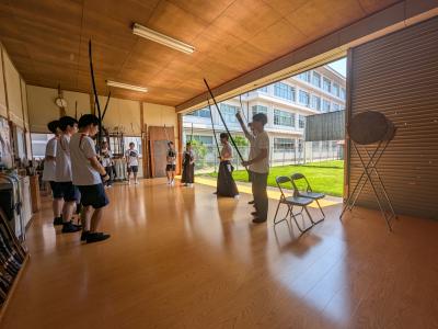 【弓道部】夏季練習。顧問・上級生による指導の様子です。