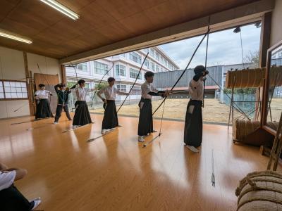 【弓道部】春一番の中、竜ケ崎一高を迎えての合同稽古